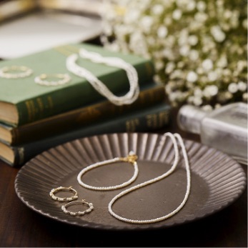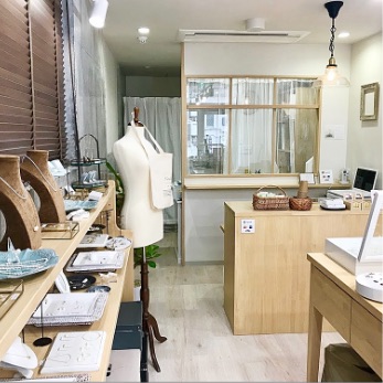 現在は、東急田園都市線・三軒茶屋駅から徒歩2分ほどの路地を入った住宅街で、「身につける人が輝く」というコンセプトのハンドメイドアクセサリーのお店を運営しています。天然石や淡水パールなどの天然素材にこだわった、上質でシンプルなデザインのアクセサリーを手ごろな値段で提供しているお店です。